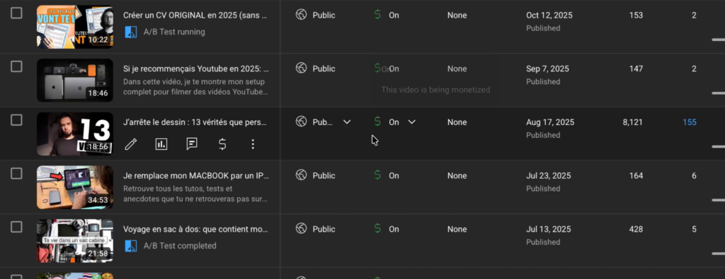 Si tu va voir mes 20 dernières vidéos, on va dire que j’en ai fait 5 de dessins qui ont bien performées.