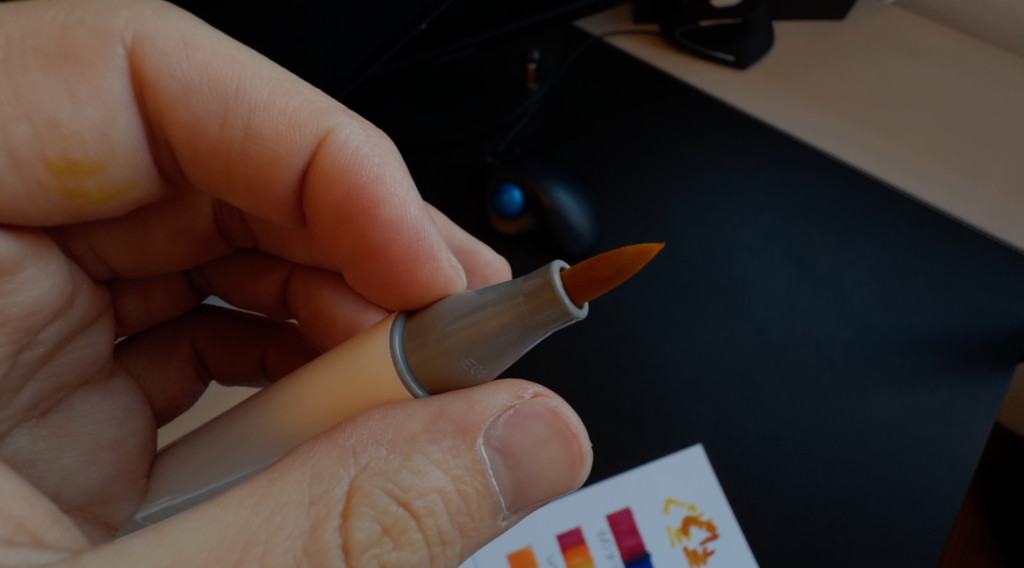 Bon clairement les pointes poreuses, le fait que le débit d’encre soit bien adapté, et puis surtout la pointe de pinceau de très bonne facture donne vraiment cette sensation de pinceau.