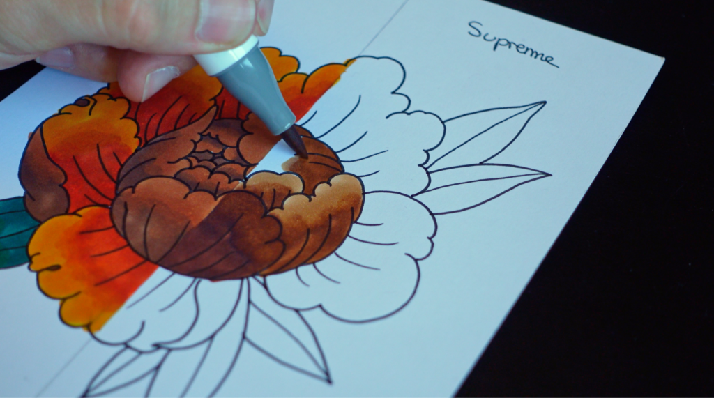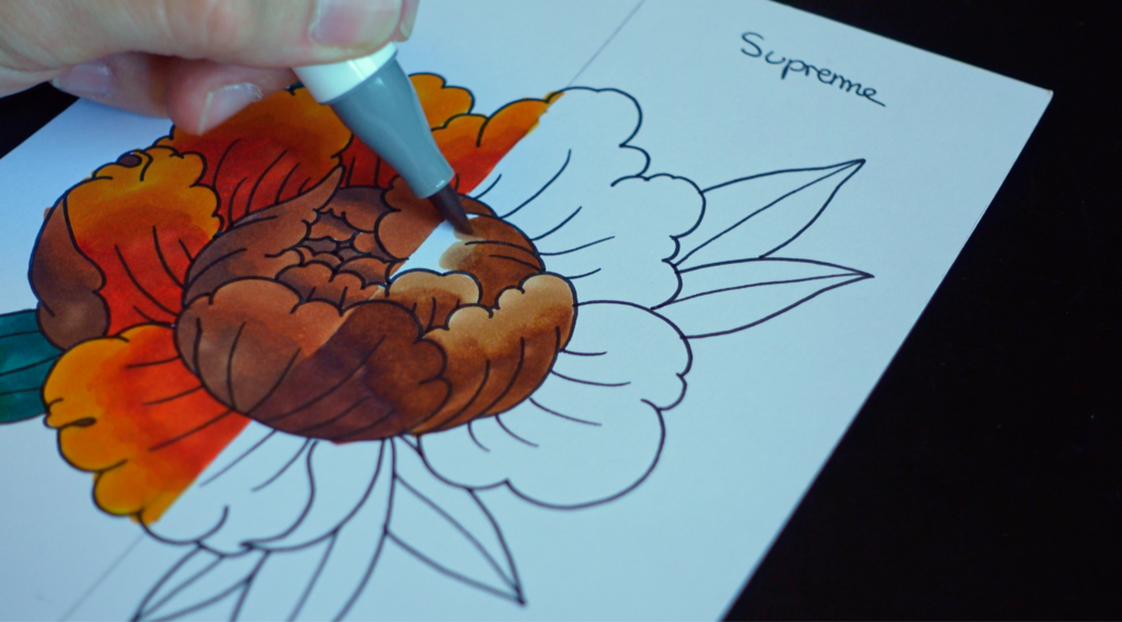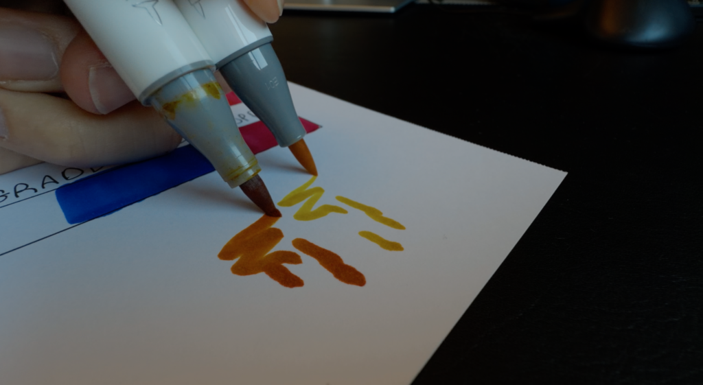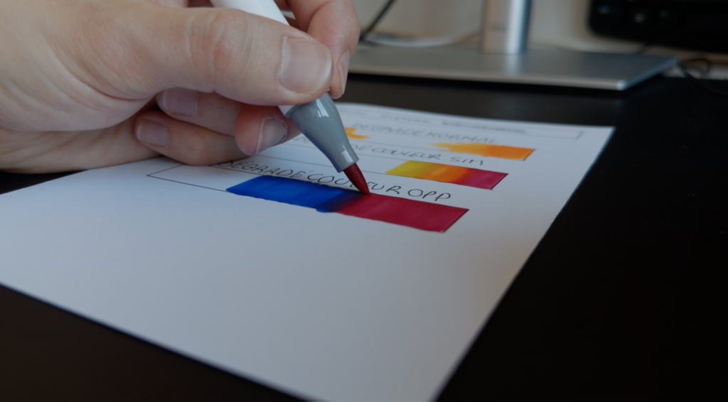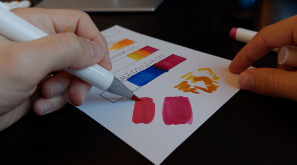 L’autre grosse différence en termes de couleur à l’utilisation, c’est la façon dont tu vas coloriser, avec ces feutres.