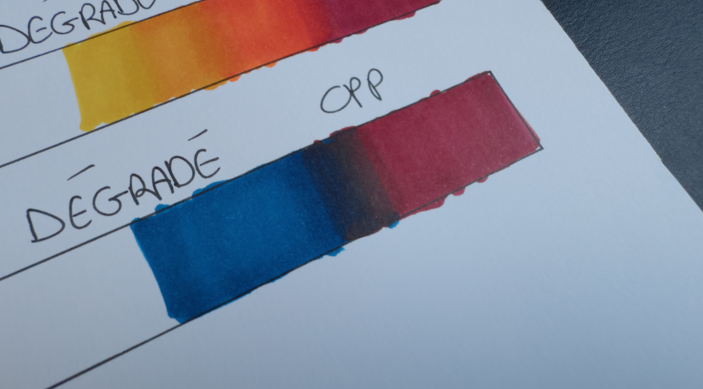 En passant au test du dégradé de couleurs similaires, on se rend compte que les couleurs se mélangent bien, comme les ohuhu classiques en réalité, encore un très bon point.