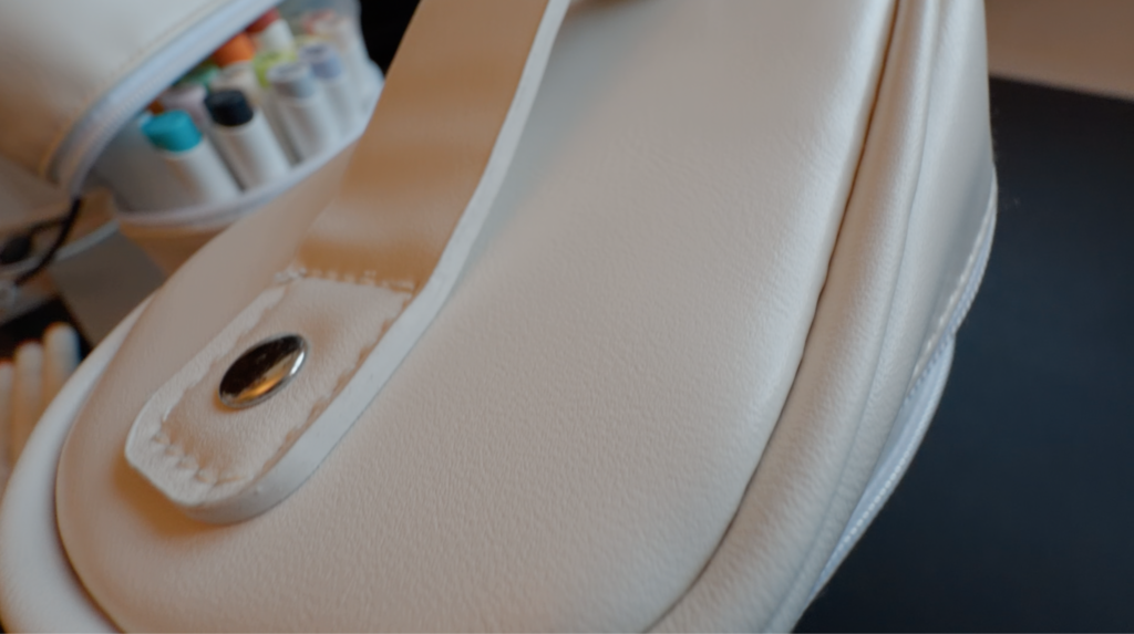 Alors ces feutres côté packaging, ils arrivent dans une petite pochette en cuir qui est très agréable. C’est un simili-cuir beige avec dessus un flocage vert. Et je trouve ça pas mal comme approche.